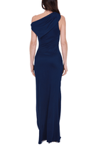 Abito lungo Red Carpet in jersey di viscosa stretch con scollo asimmetrico e profondo spacco frontale sulla gonna