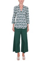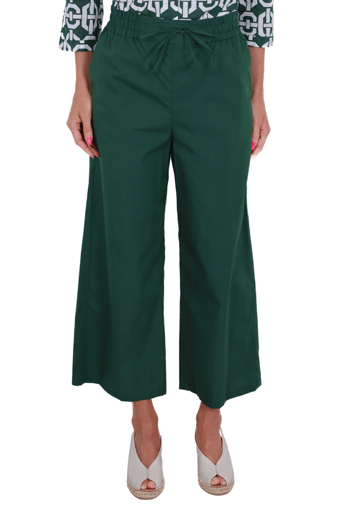Pantalone cropped a palazzo con elastico e laccio in vita in fresco cotone