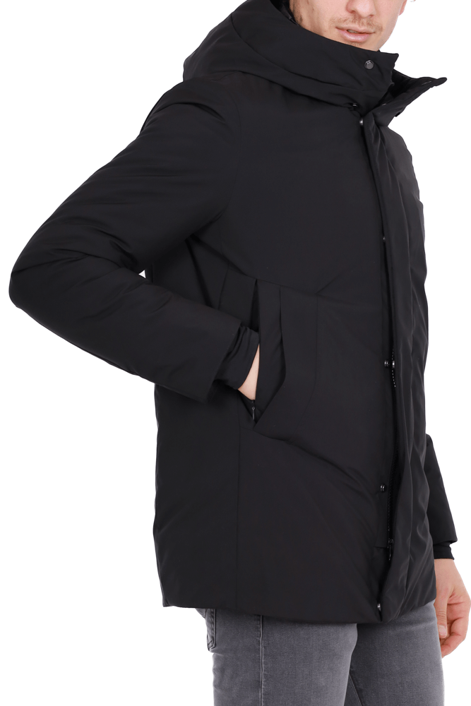 Giacca invernale lunga con calda imbottitura e collo avvolgente con cappuccio