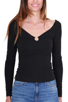 Maglia a manica lunga in jersey a costine nero