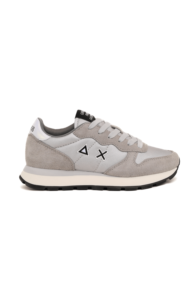 Sneakers donna in pelle e tessuto effetto lucido argento