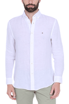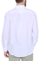 Camicia uomo manica lunga in puro lino, modello button down regular fit con iconica bandierina logo ricamata sul petto