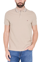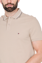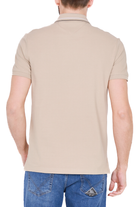Polo uomo mezza manica in piquet di cotone stretch, modello con iconica bandierina logo ricamata e bande colorate sul collo